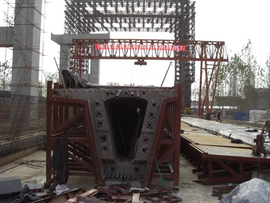 鄭州黃河公鐵兩用橋40m箱梁模板施工現(xiàn)場(chǎng)